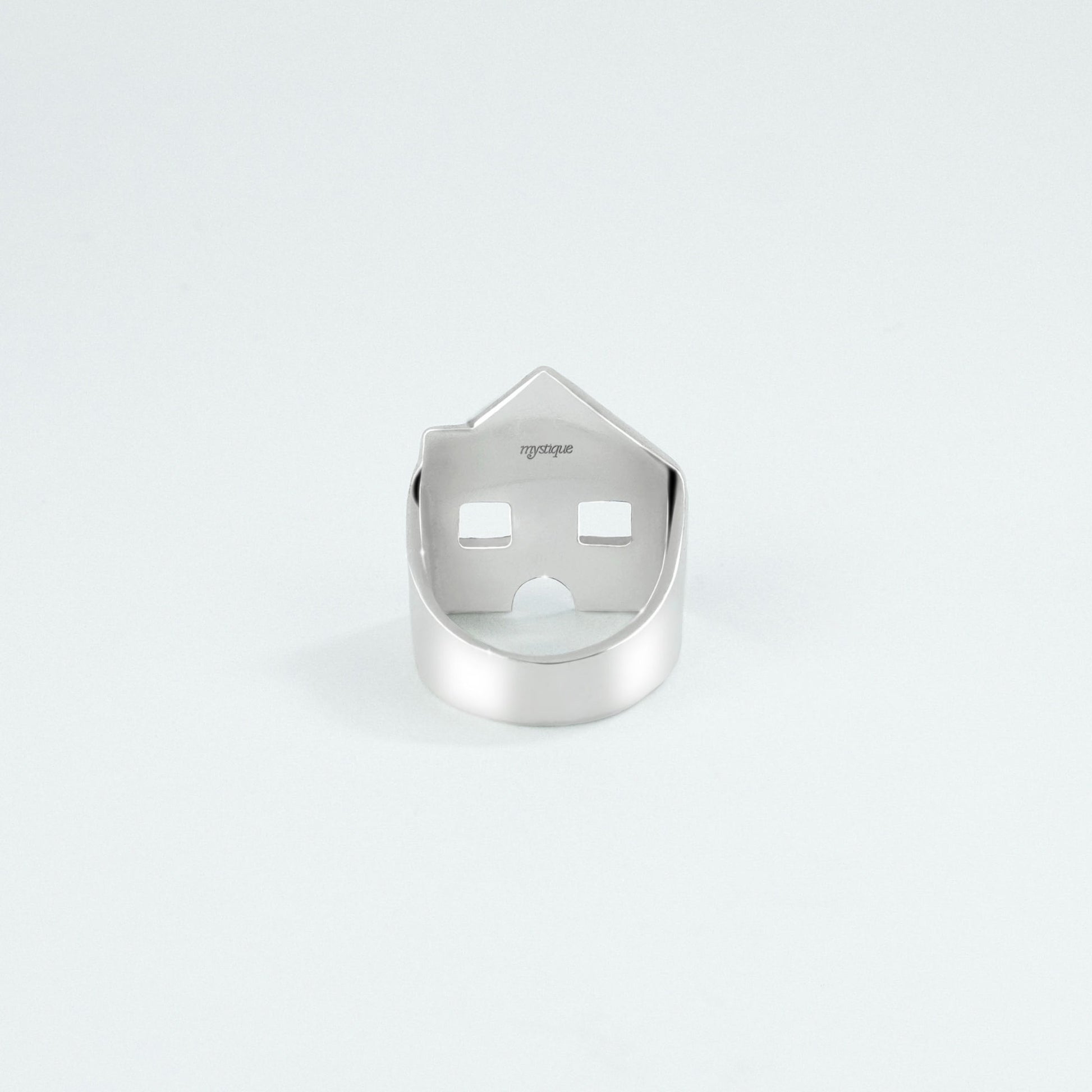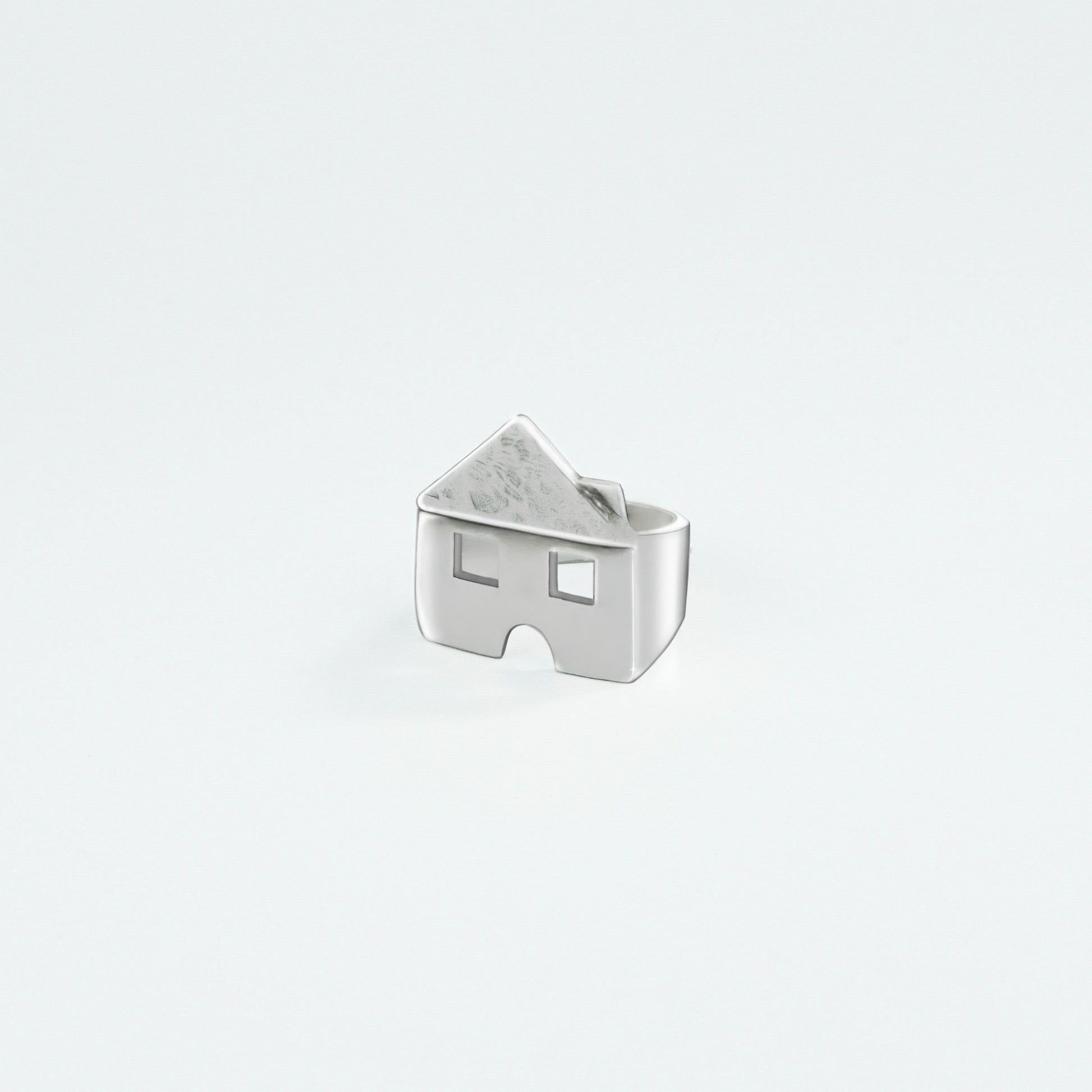 Peça inspirada na ideia de casa como proteção, liberdade e autoconhecimento. O formato vazado remete ao lar e dialoga com o círculo do anel, símbolo de continuidade e eternidade. Resultado: uma pequena escultura para uso diário, leve no toque e marcante na mão.