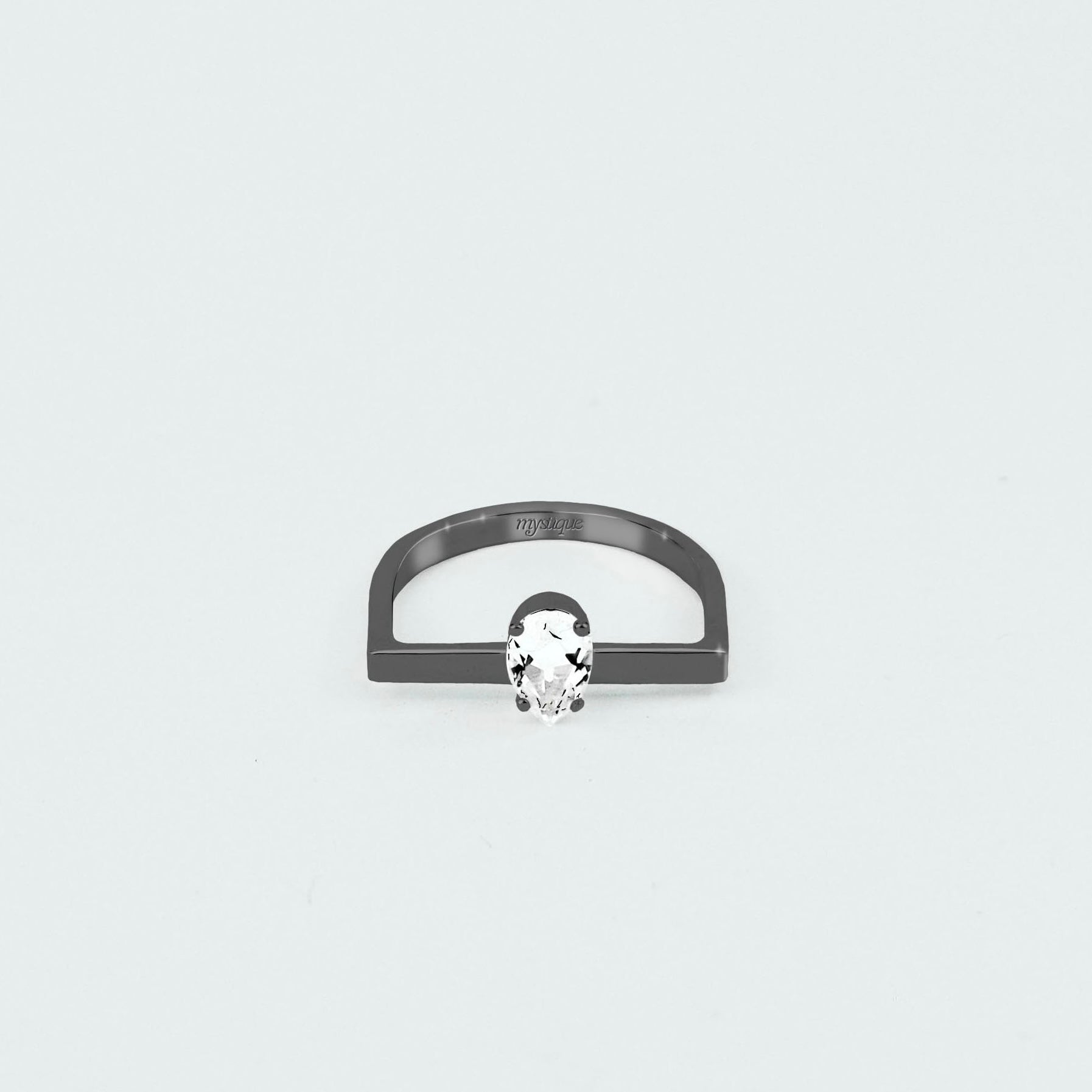 Anel tipo solitário com Topázio Incolor em lapidação gota. A peça pode ser usada sozinha ou encaixada ao anel Casa, criando um conjunto com volume e contraste. O aro de linhas retas realça a transparência e o brilho da pedra, trazendo um ponto de cor elegante para o dia a dia.