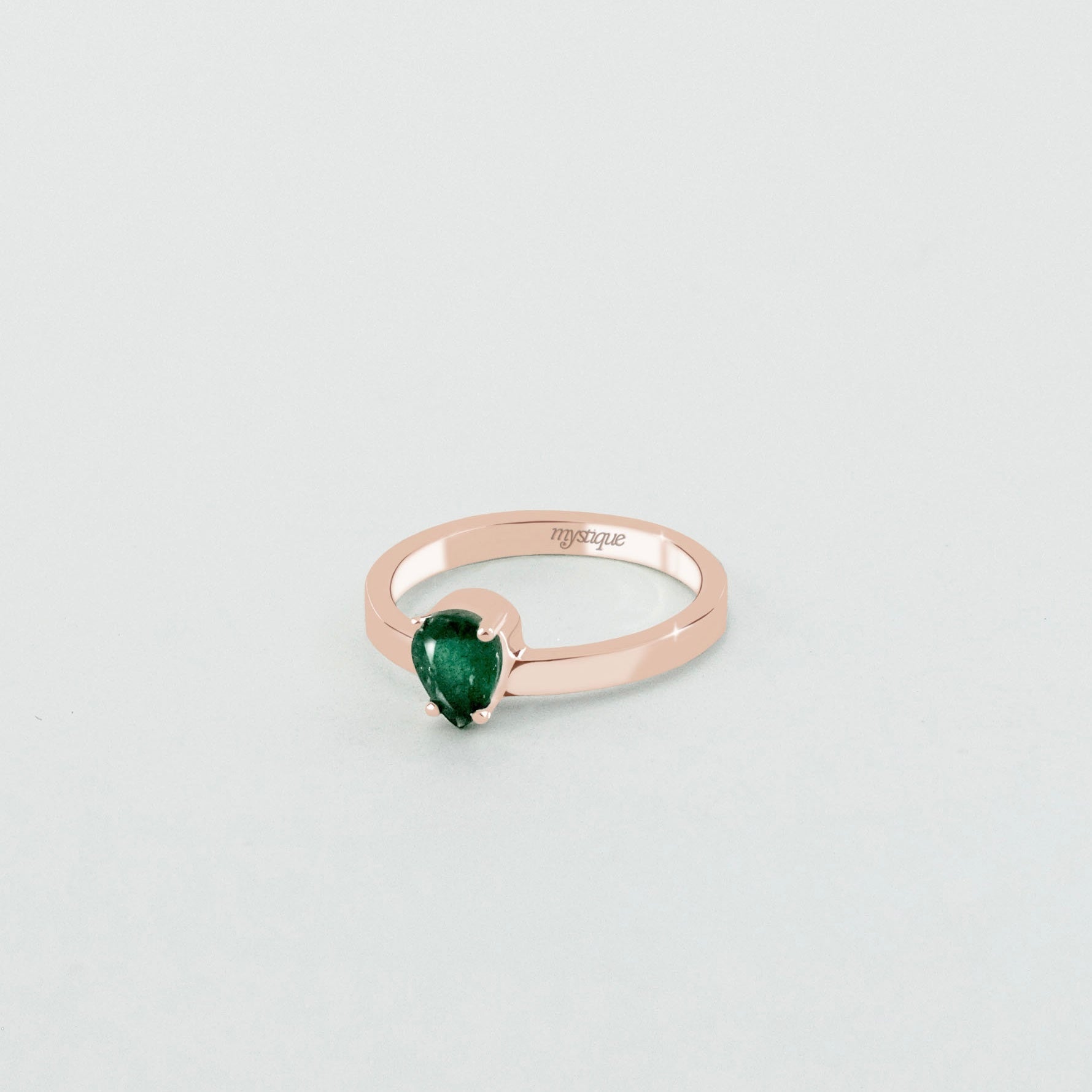 Anel Porta Verde - Pedra de Esmeralda com banho em Ouro Rosé